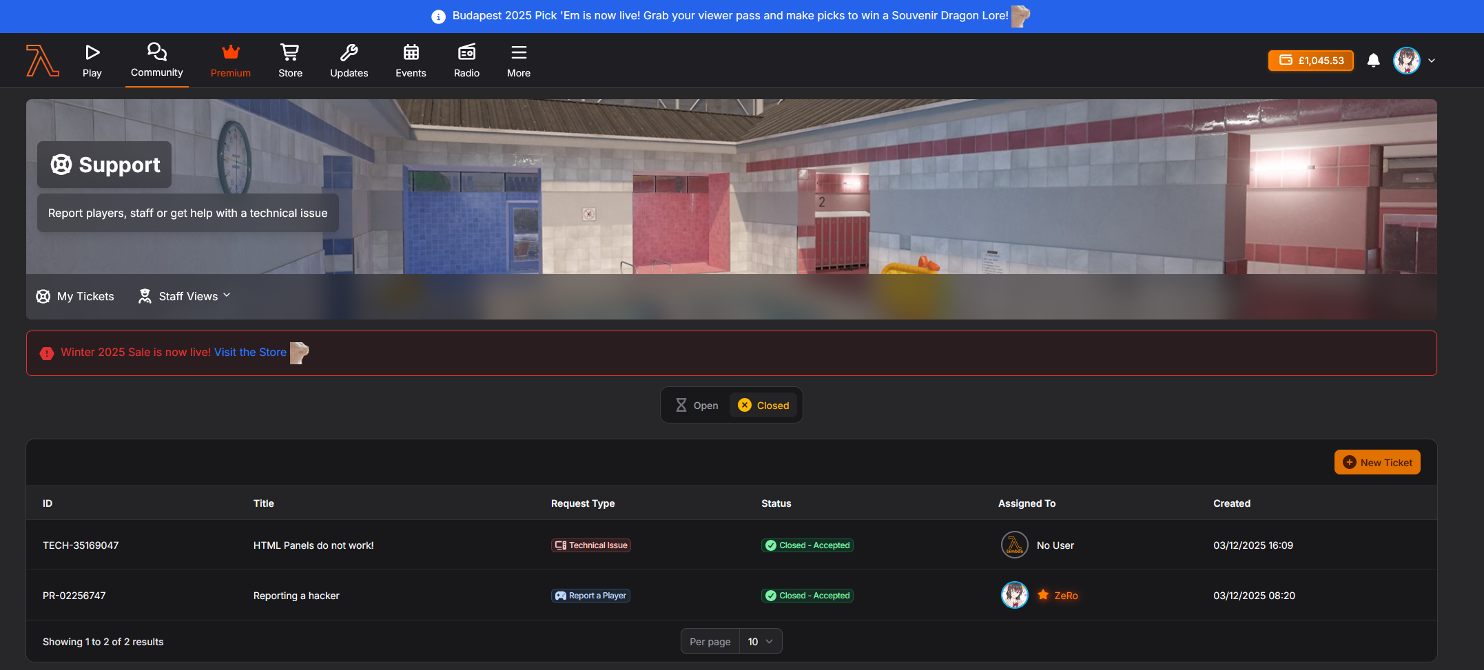 With this updated, we replaced the old "Reports" system with a brand new Support Tickets system