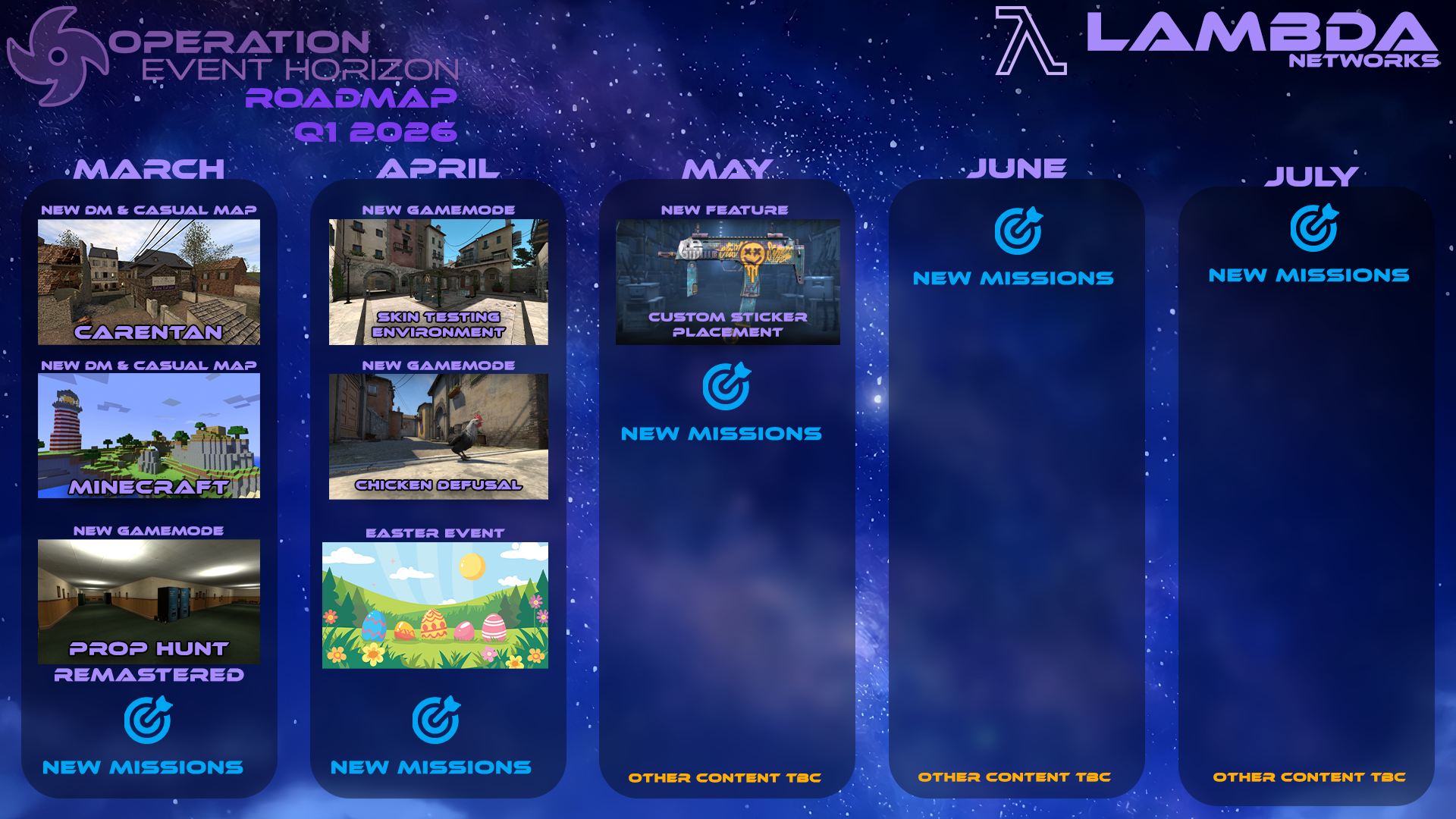 Below you'll find the Roadmap for Operation Event Horizon for the first half of 2026.