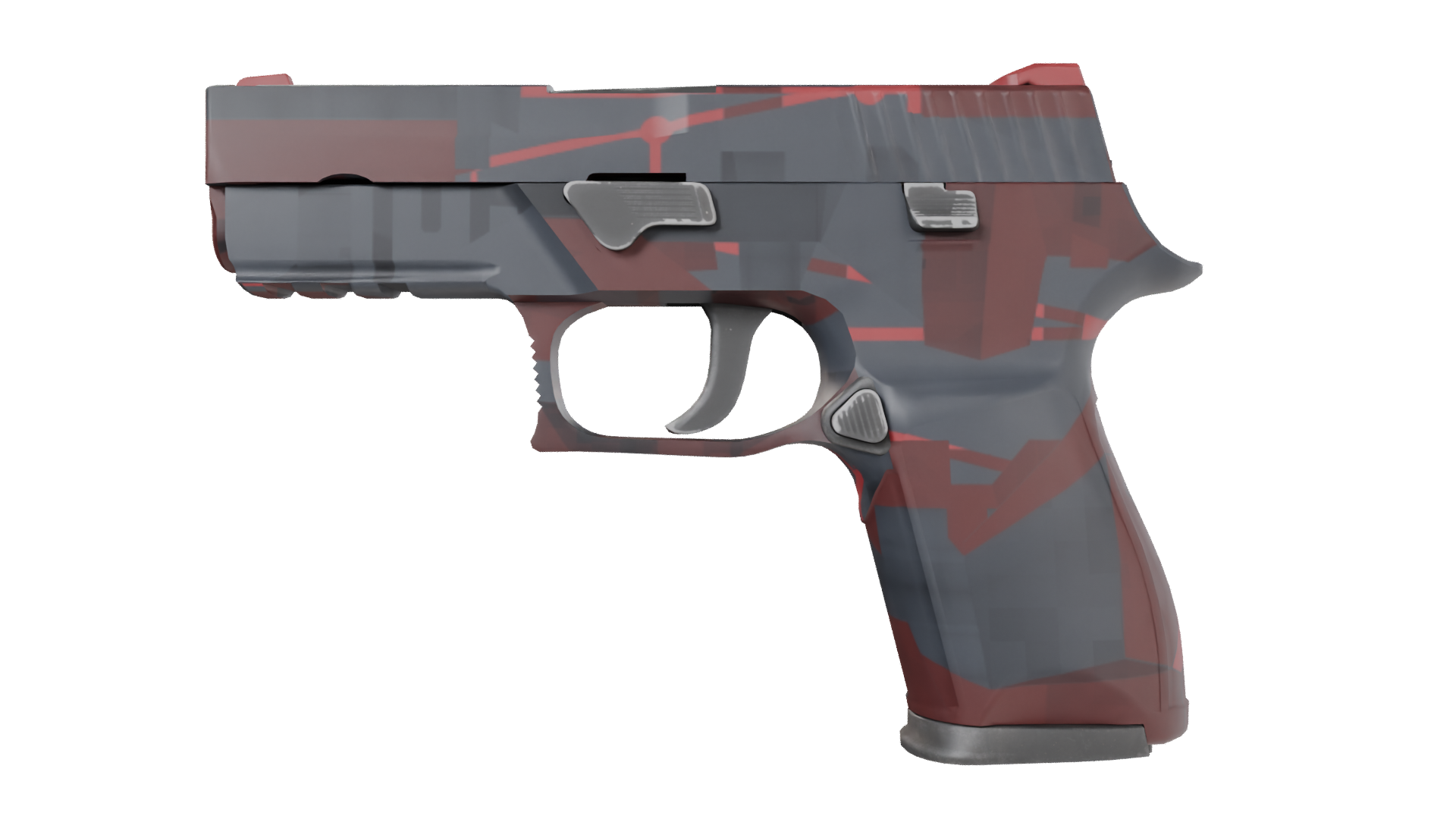 A low-recoil firearm with a high rate of fire, the P250 is a relatively inexpensive choice against armored opponents. It has been painted with a maroon and grey pattern.